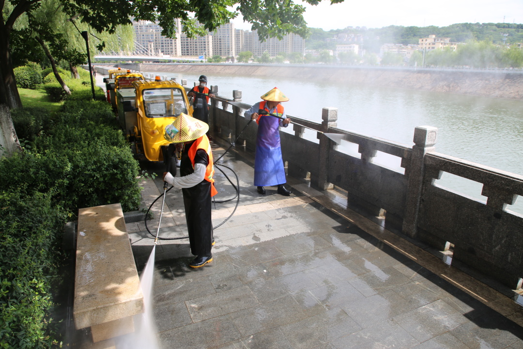 我局通过深化“席地而坐”保洁示范区创建,健全完善以“扫、捡、冲、刷、拔、洗、擦、巡”等组合一体的精细化作业模式,加强对绿化带、墙根、树坑等重点部位的清扫保洁,加大对线杆、电箱、栏杆、垃圾箱等重点设施的清洗频次,达到“四无三洁一见”作业标准。每周开展定检随检,督促保洁人员加强公园广场区域内及周边环境卫生保洁,做到垃圾清扫保洁管理全覆盖,切实提升环境质量。目前江滨公园、七星公园、康乐广场等3个片区已完成示范区域24万平方米。
